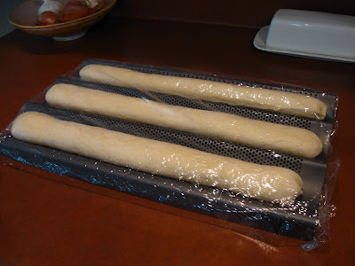 Lightly cover the baguettes with plastic wrap and let them rise until they are at least doubled. Depending on room temperature and how happy your yeast is, that can be anywhere from 1-3 hours.